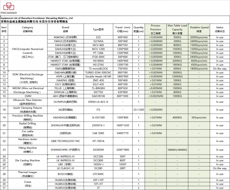 以下為品成公司東莞分公司最新設備清單,之后若有變動將不定時更新,敬請關注!