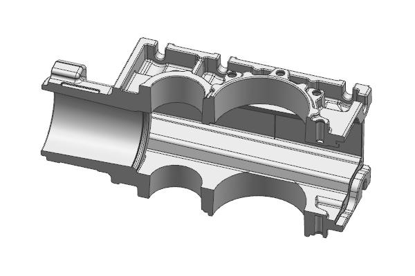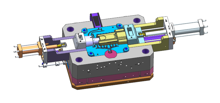 產品內側的抱緊力較大,為避免液壓油缸出現拉不動而抱緊在行位上,模具設計的結構采用機械力先將行位抽出一部分來避免該問題的發生。