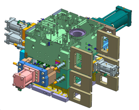 1.模具一共由5個(gè)液壓油缸成型。